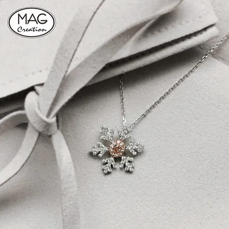 Special Design Snowflake Pink Diamond Pendant Charm Necklace:18K white gold, + @0.05ct/1 pink diamond + 0.045ct/12 pink loose diamond + 0.215ct/66 loose diamond