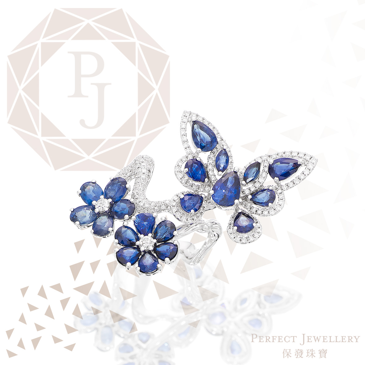 18KW RING WITH DIAMOND & SAPPHIRE