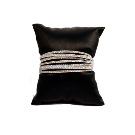 This featured white gold diamond bangle comes with a simplistic design. The multi-band construction is casual and effortless. This chic and glamorous accessory complements your evening look beautifully.