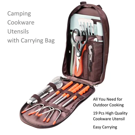 19 pcs Camping Cookware Utensils with Carrying Bag