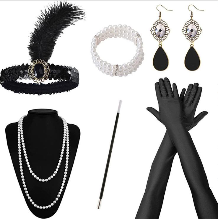1920s costume party props alloy headband Long black gloves pearl necklace smoke pole