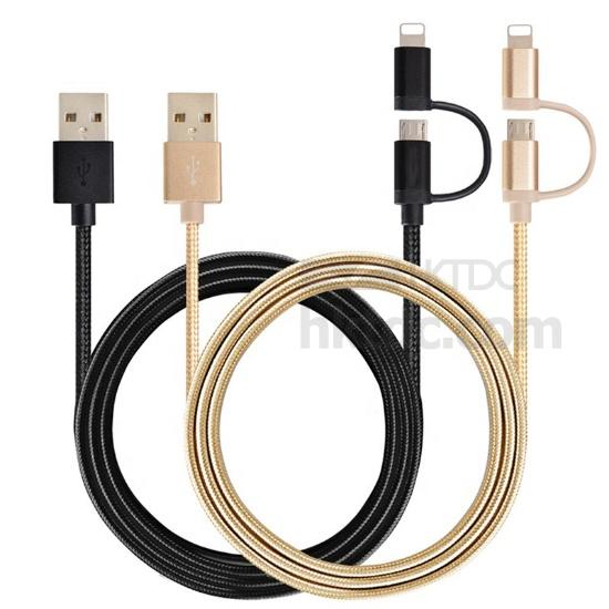 1m Lightning + micro 2 in 1 Nylon Braided Cable