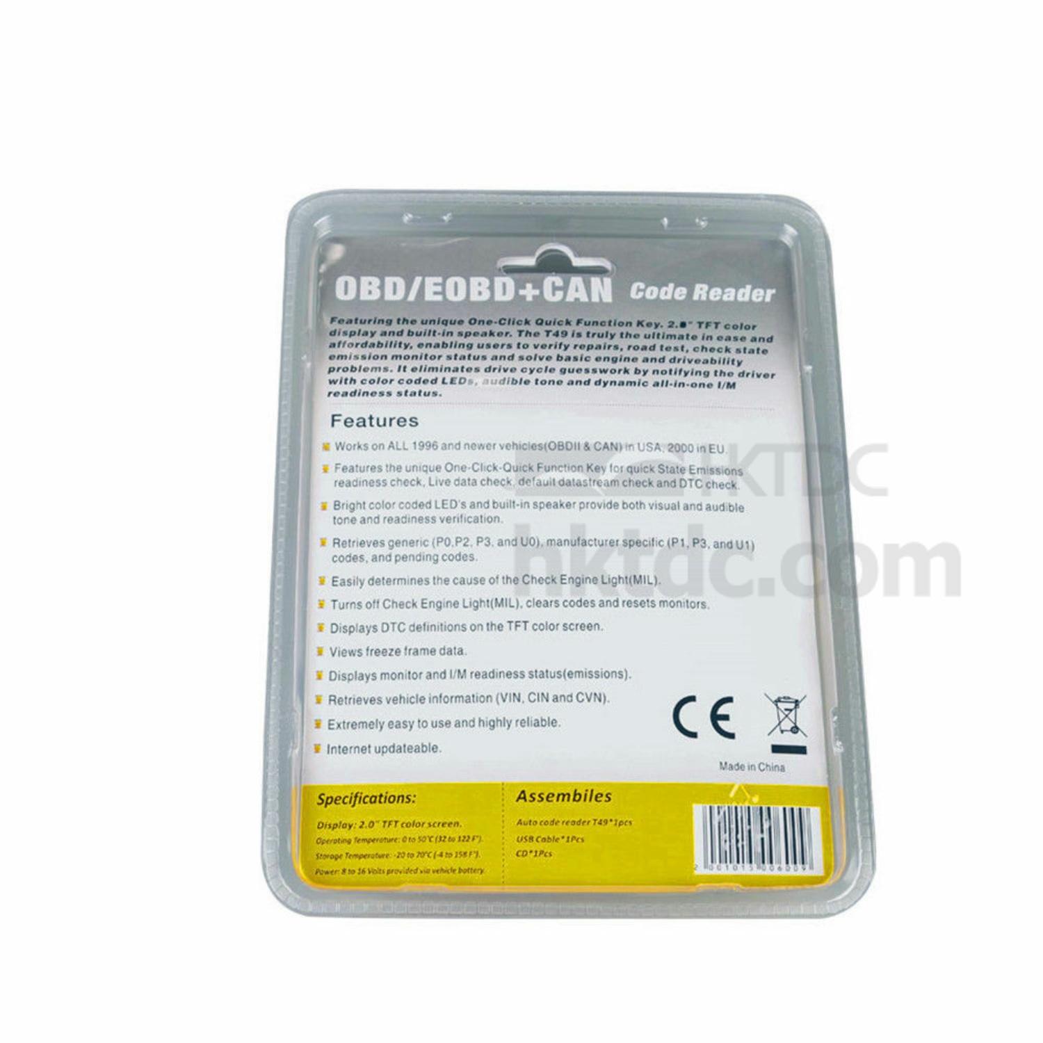 OBDII&CAN Car Code Reader Scanner T49 OBD2