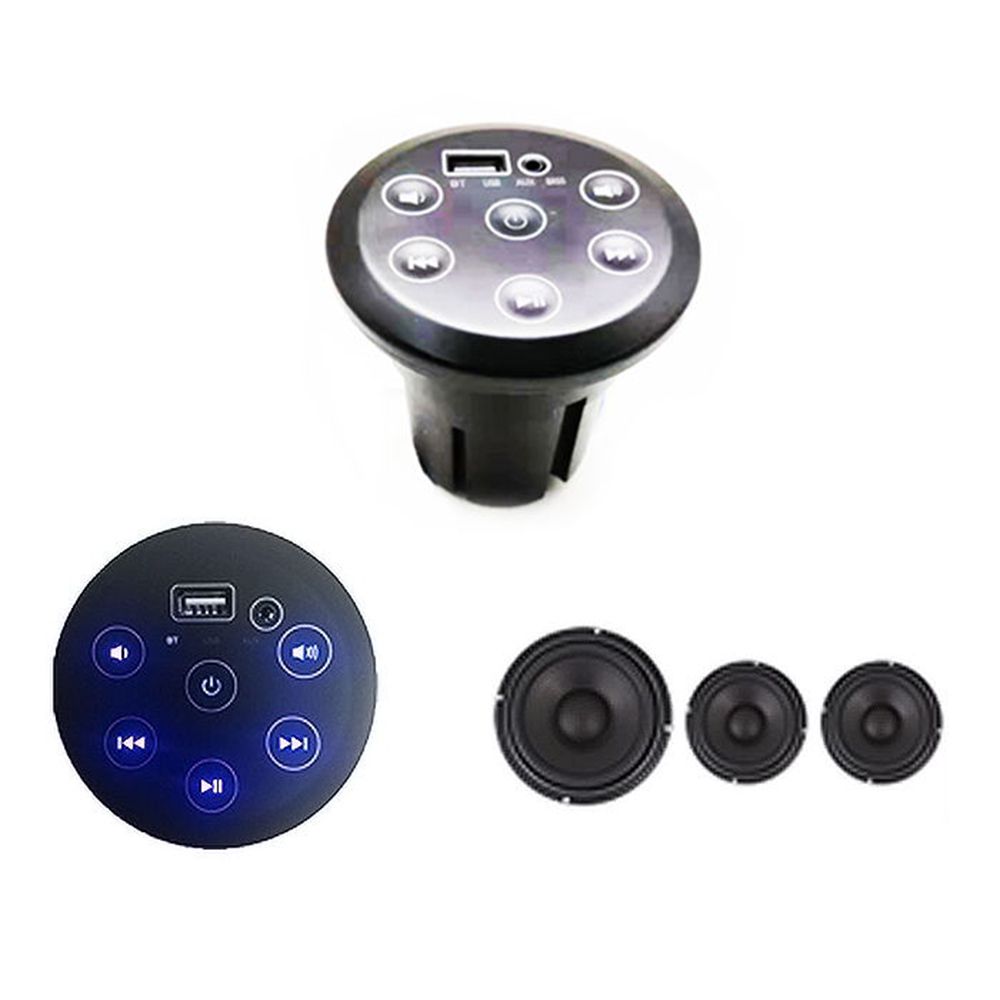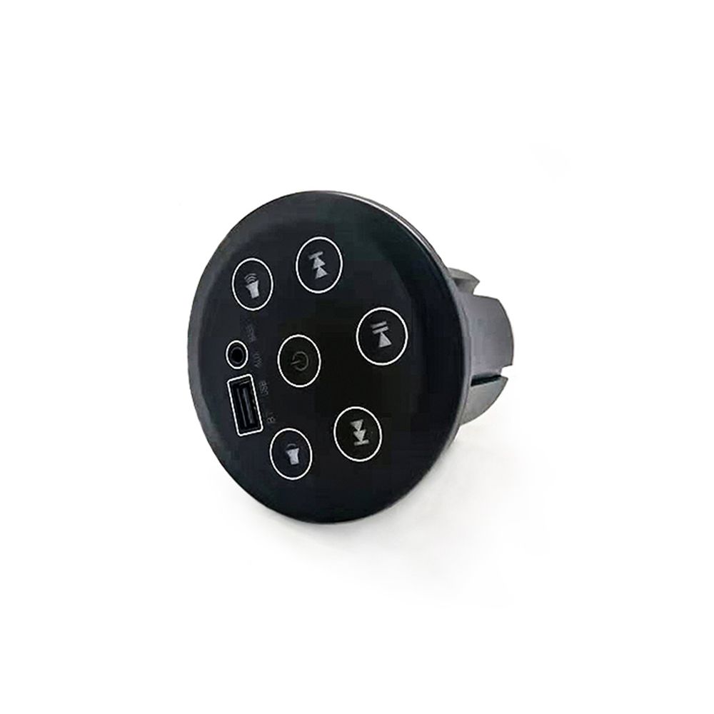 2.1 round touch function for On/Off, Volume +-, Previous/next + 2 in1 USB socket support for music player or Power supply + AUX socket + Bass support