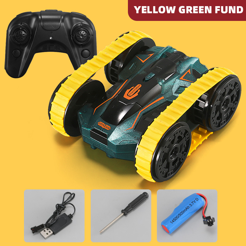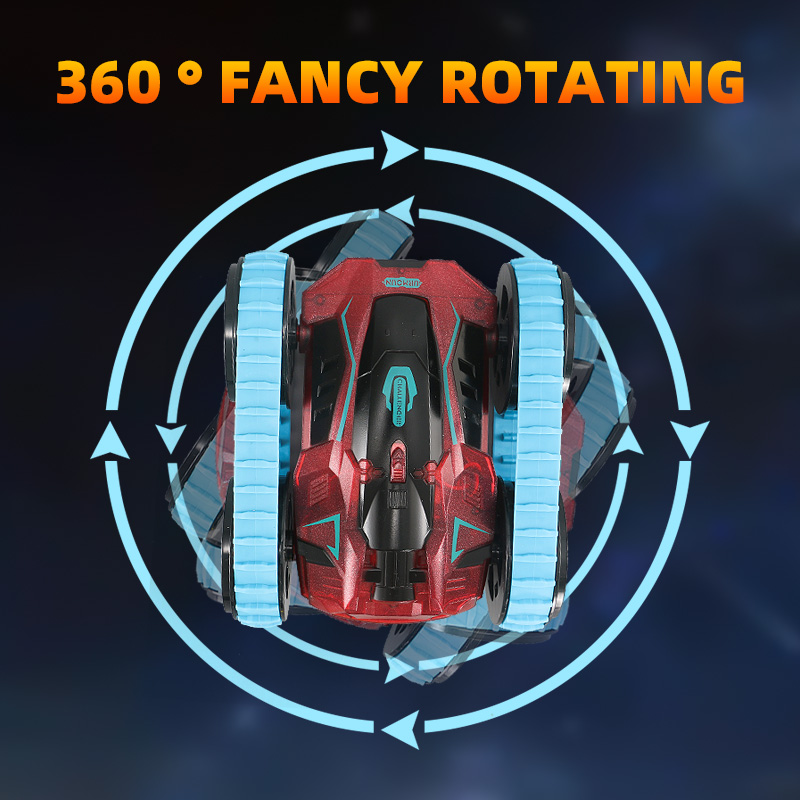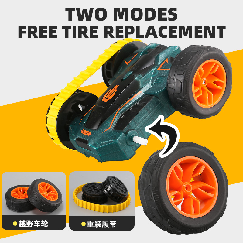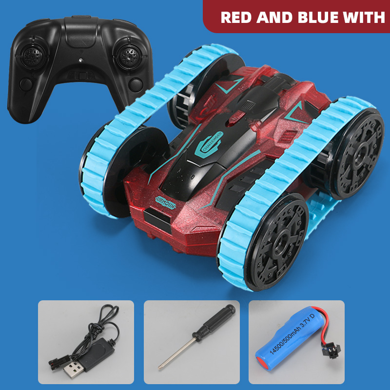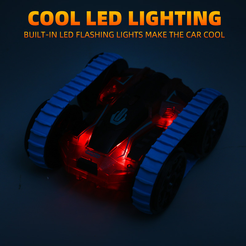 2.4G 4 WHEELS DOUBLE SIDE RC STUNT CAR(2 in 1) 1- Play time: 20min,2- Charging Time: 1.5h,3- Control distance: 40M,4- Car battery: 3.7V 500 mAh rechargeble battery (included),5- Remotor Battery: 1.5V AAx2 battery (not included),6- Accessory: USB charger x 1, screwdriver x 1,7- Product size: 15.5x13.5x7cm,8-Function:2.4G,light,go forward/back,turn left/right,double side filp,360 spins,demo