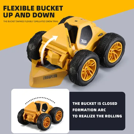 2.4G STUNT SNOW CLEARER 1- Play time: 20min,2- Charging Time: 1.5h,3- Control distance: 30M,4- Car battery: 3.7V 500 mAh rechargeble Li-ion battery (included) 5- Remotor Battery: 1.5V AAx2 battery (not included),6- Accessory: USB charger x 1, screwdriver x 1,7- Product size: 22.5X15.5X11cm,8-Function:2.4G,go forward/back,turn left/right,4 wheel drive,bulldoze up and down,360 spins,demo,360 turn, all around turn characteristic light,wear-resisting tires