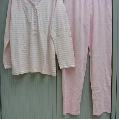 Ladies' 100% cotton single jersey knitted pyjamas.