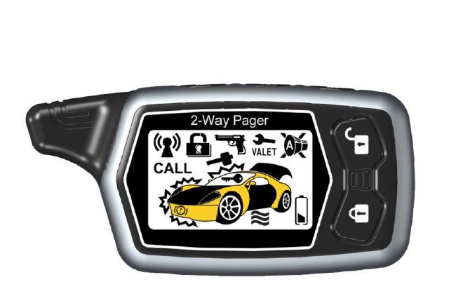 LCD icons display: TX/RX mode, disarm, unlock, arm, lock, mute arm/disarm, light or heavy shocking, valet mode, low battery, anti-hijack, trunk, hood, door ignition separate triggers, vibration or buzzer alert, car call