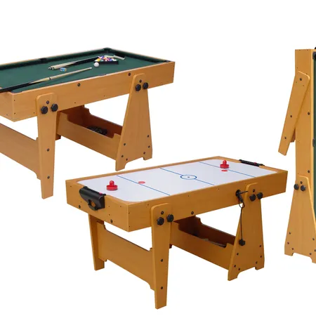 Switch between billiards (with felt surface, cues, and balls) and air hockey (smooth PVC surface, paddles, and puck) in minutes – double the fun, half the space!