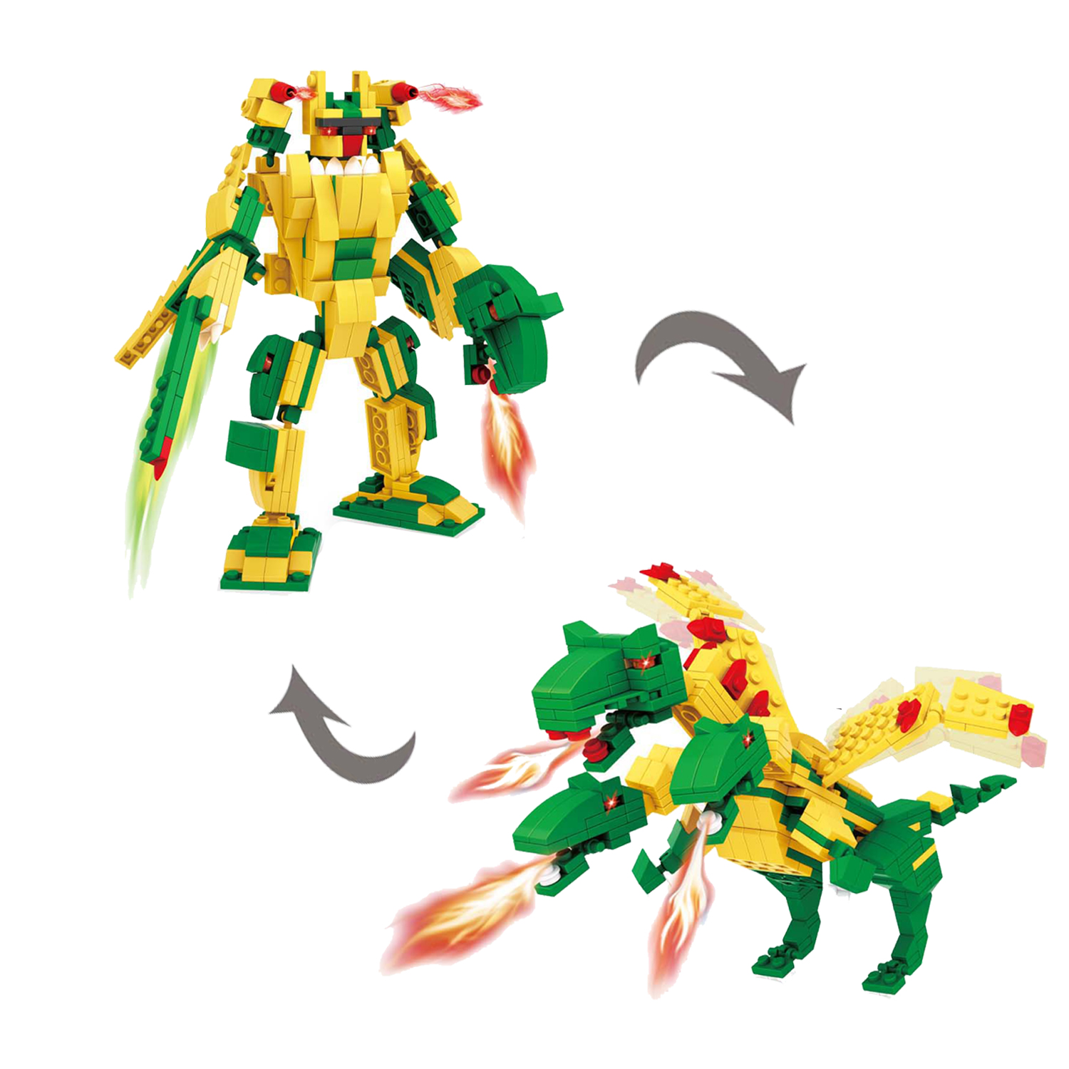The blocks can be made into 6 different styles of small dinosaurs or either of the 2 bigger models ---- Three-headed Dinosaur / Robot