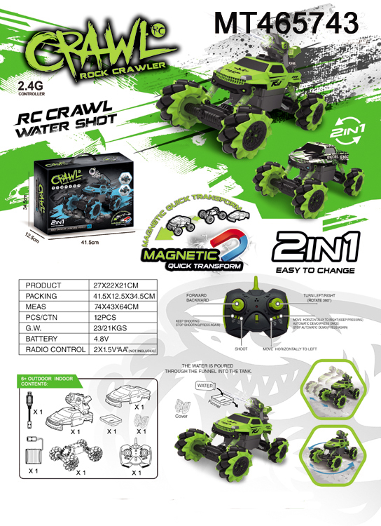 Vaiyer RC Rechargeable Remote Control Stunt Car for Kids with 2-in-1 Interchangeable Toy Water Gun Tops and normal cover, Rock Crawler Outdoor Off Road Vehicle with 360 Degree Movement (Green)