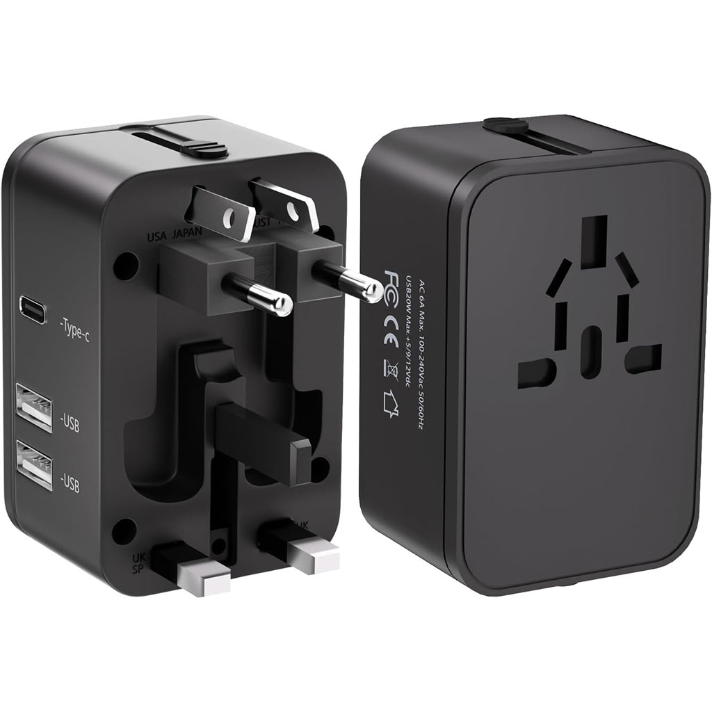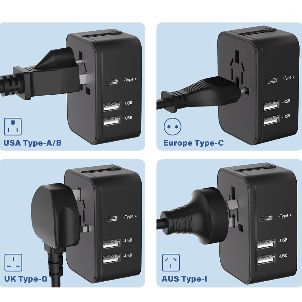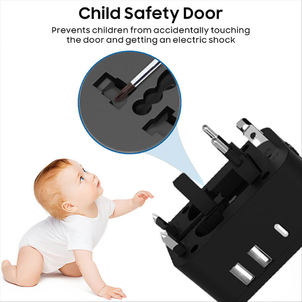 2 x USB-A + Type-C Universal Travel Adapter includes the following features :