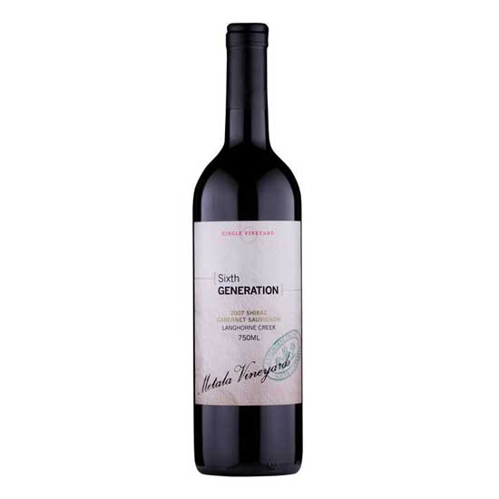 This 2007 Sixth Generation Single Vineyard Shiraz is a dark red wine with rich fruit flavors. It features aromas of plums and blackcurrants with peppery and oak scents. This Cabernet Sauvignon makes a great table wine with red meat.