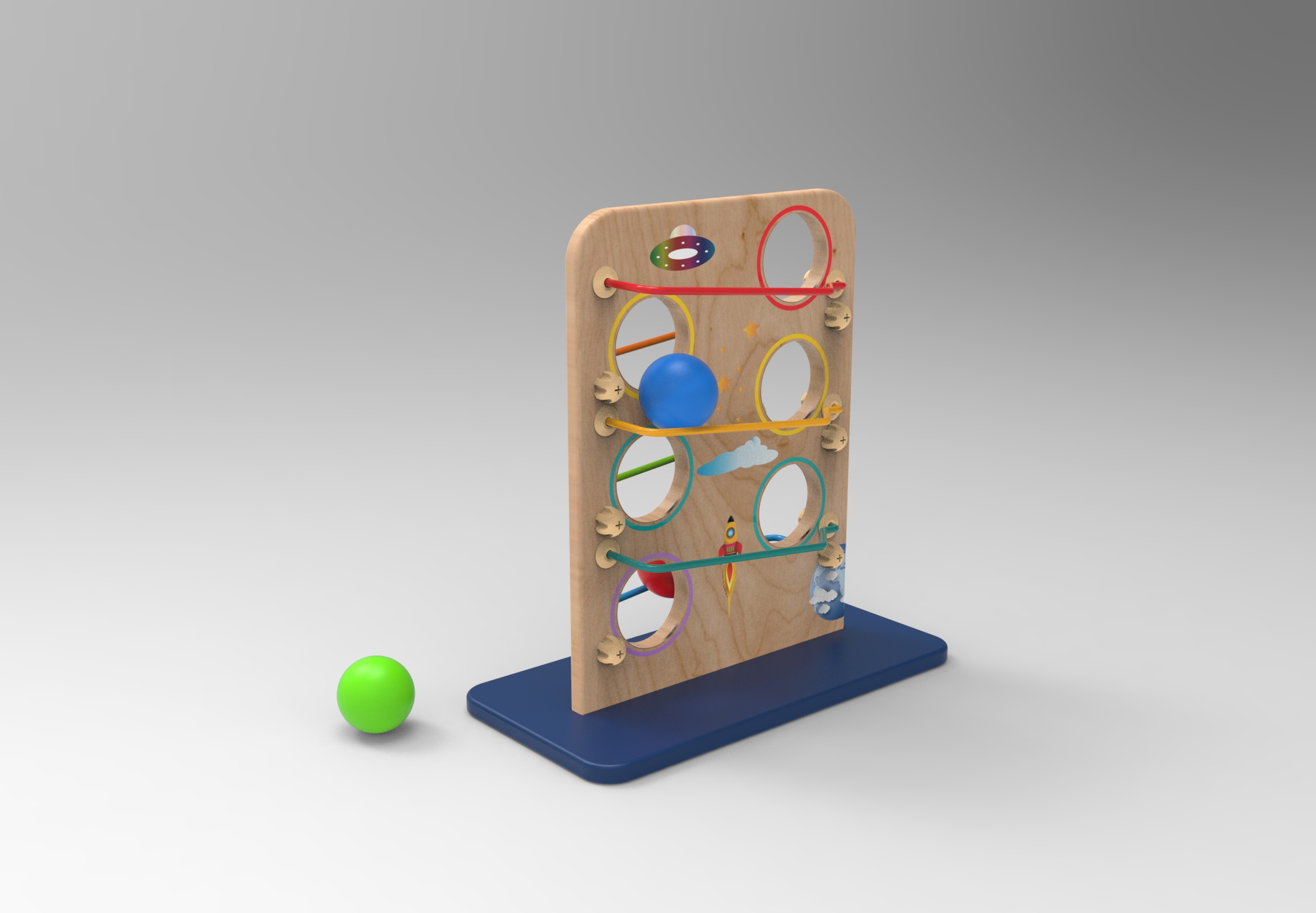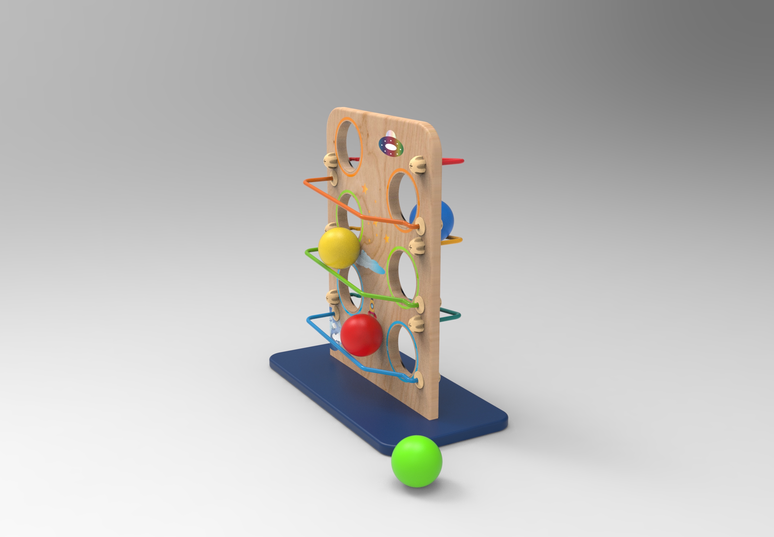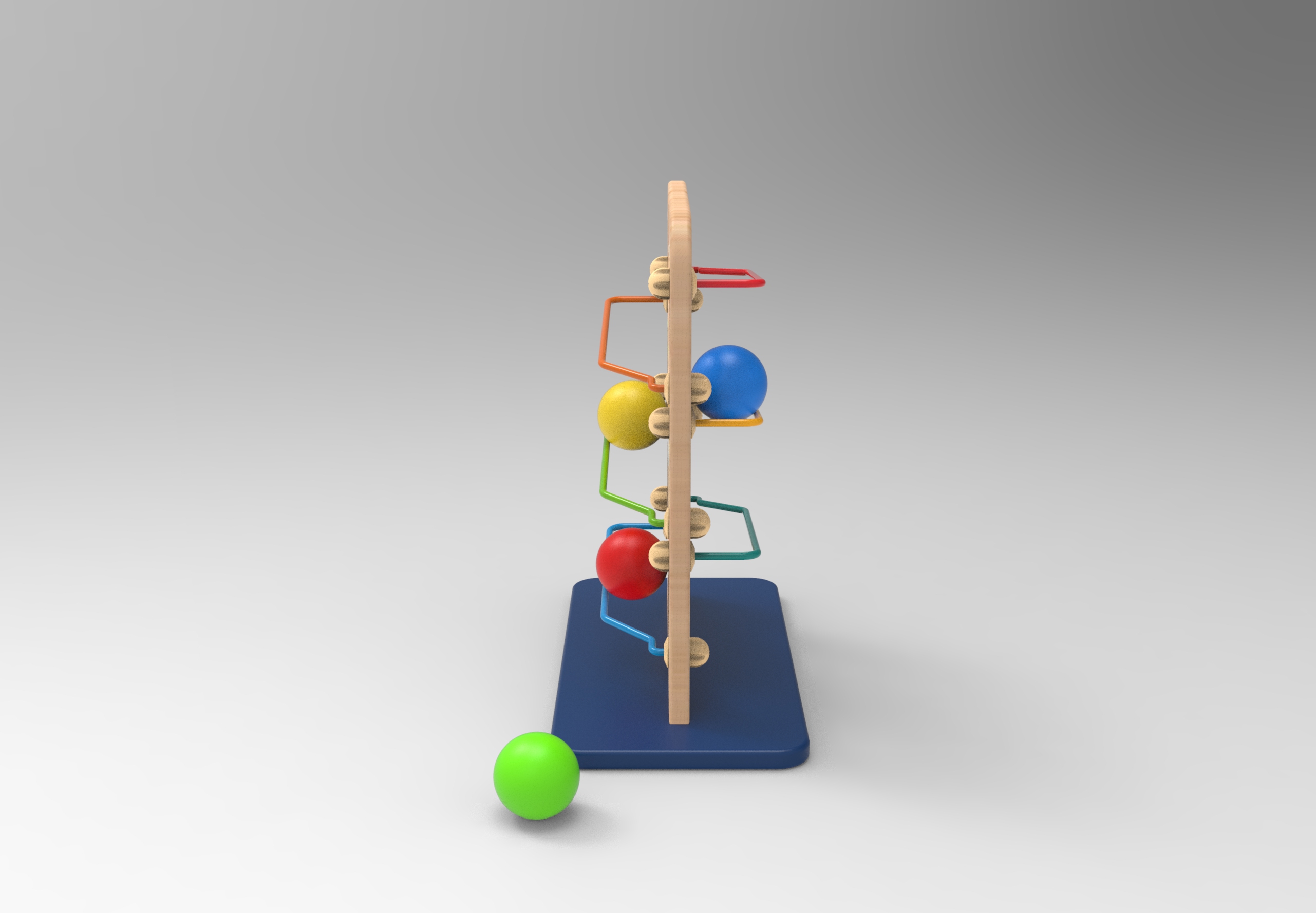 When the ball falling down from rail to rail , makes sound to catch children's attention.