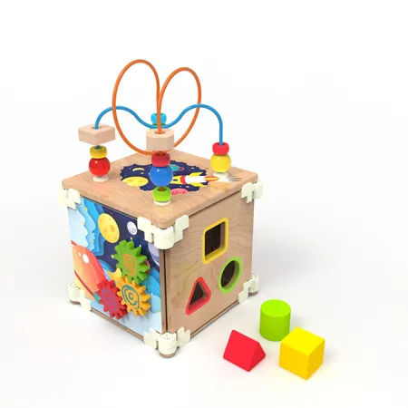 Wooden Activity Cube , can be knock down packing inside the colorbox to save massive transportation cost and Storage space.