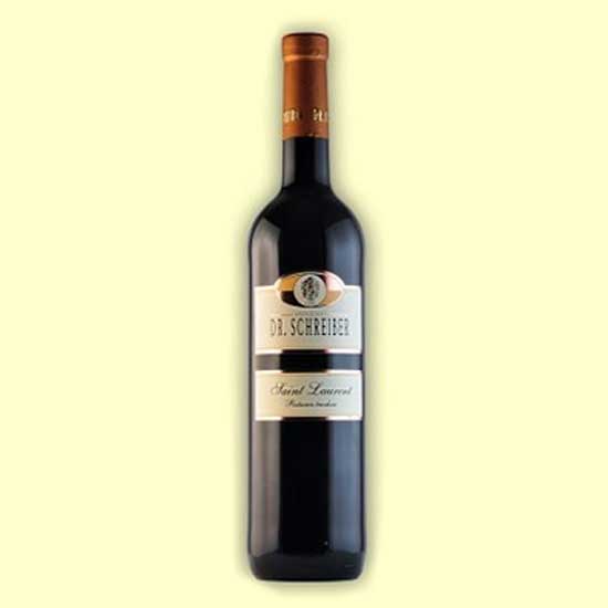 Displayed is a bottle St. Laurent that originates from Germany. Made from carefully selected grapes, this dry red wine is well-balanced and has fruity aromas. This pleasant table wine is a good choice to go with red meats and stews.