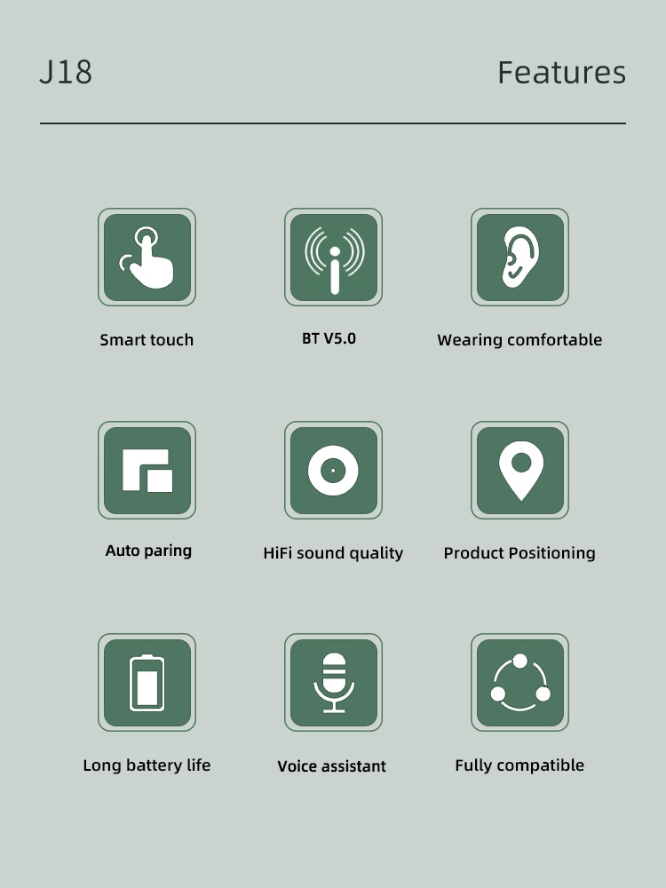 2020 New Arrivals True Wireless Stereo Earpiece Earphone BT 5.0 Wireless TWS Earbuds J18