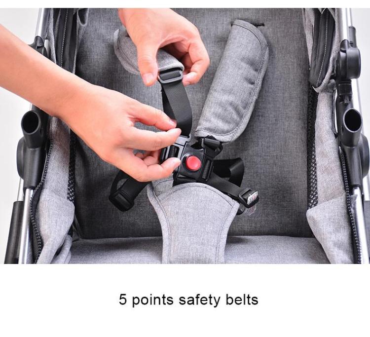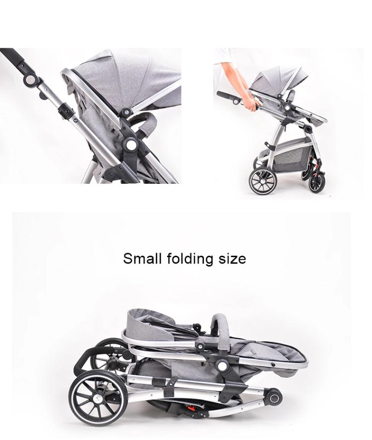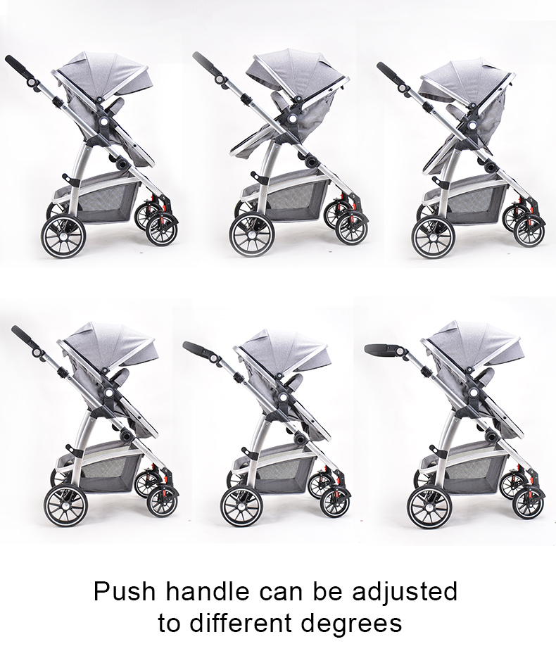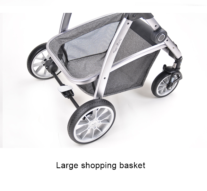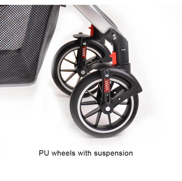 Features: Brake pipe with shock absorption, convertible bassinet, adjustable PU handle, cloth handle bar, PU footrest, quilting foot cover, cup holder, wrist safety belt, mosquito net,cotton cushion