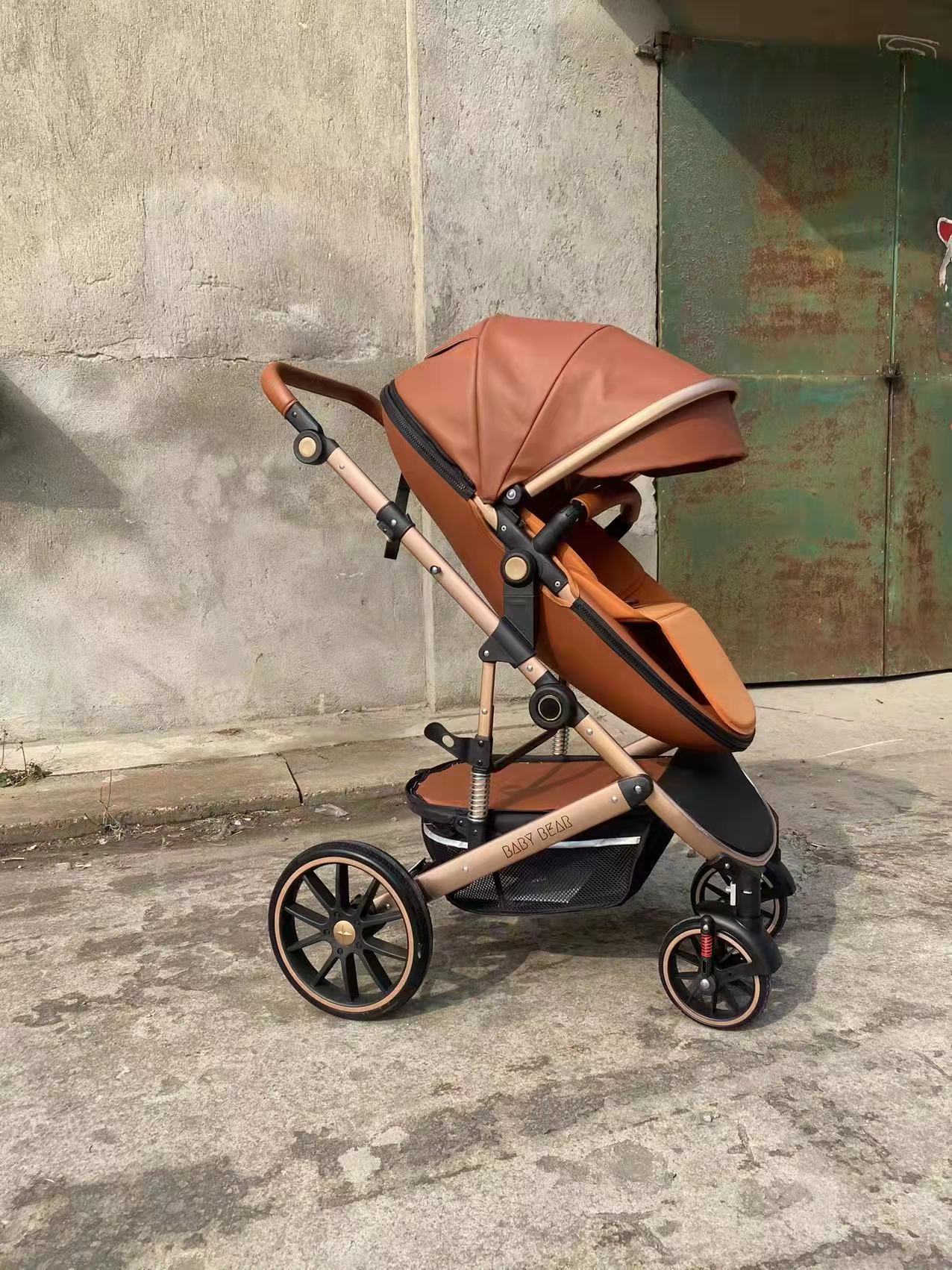 Features: Frame with shock absorption, convertible bassinet, adjustable PU handle, PU handle bar, PU footrest, PU foot cover, cup holder, wrist safety belt, mosquito net, cotton cushion