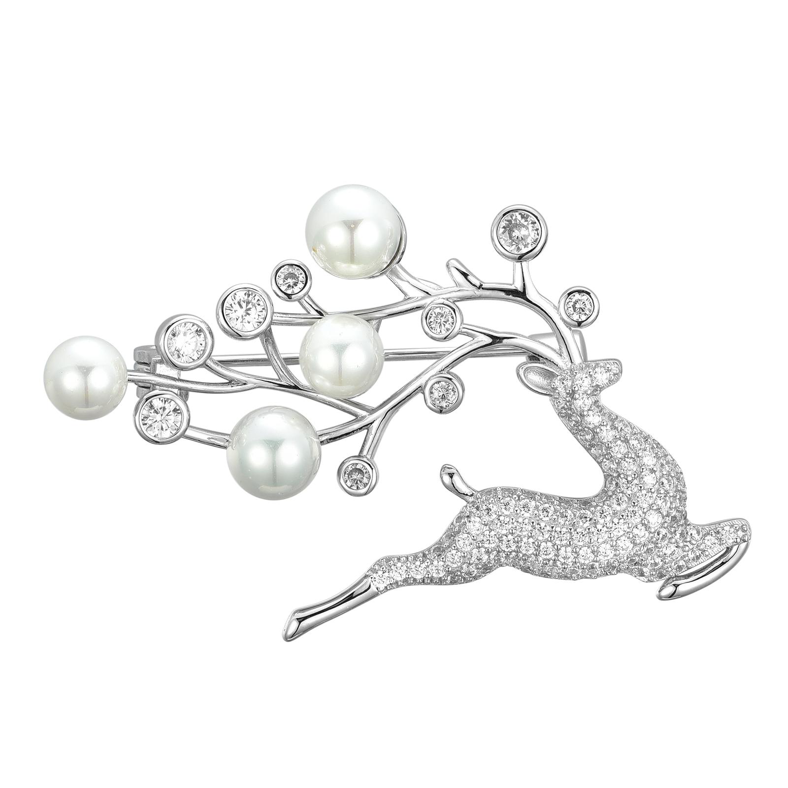 2025 Milu Deer Fashion New Style 925 Silver Jewellry 925 Silver Pearl Brooch