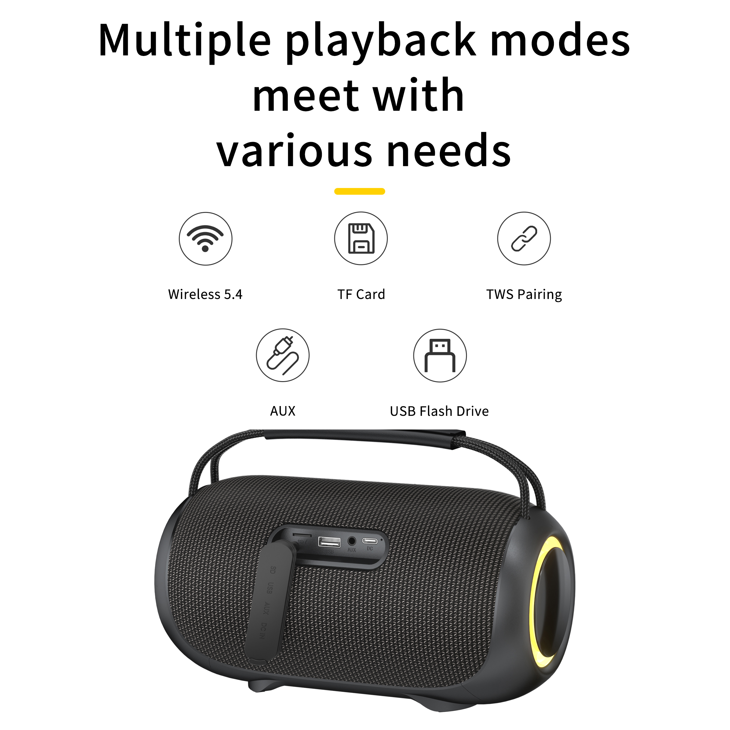 Audio Input: Wireless + TF + USB+AUX