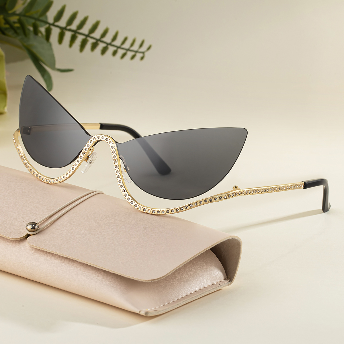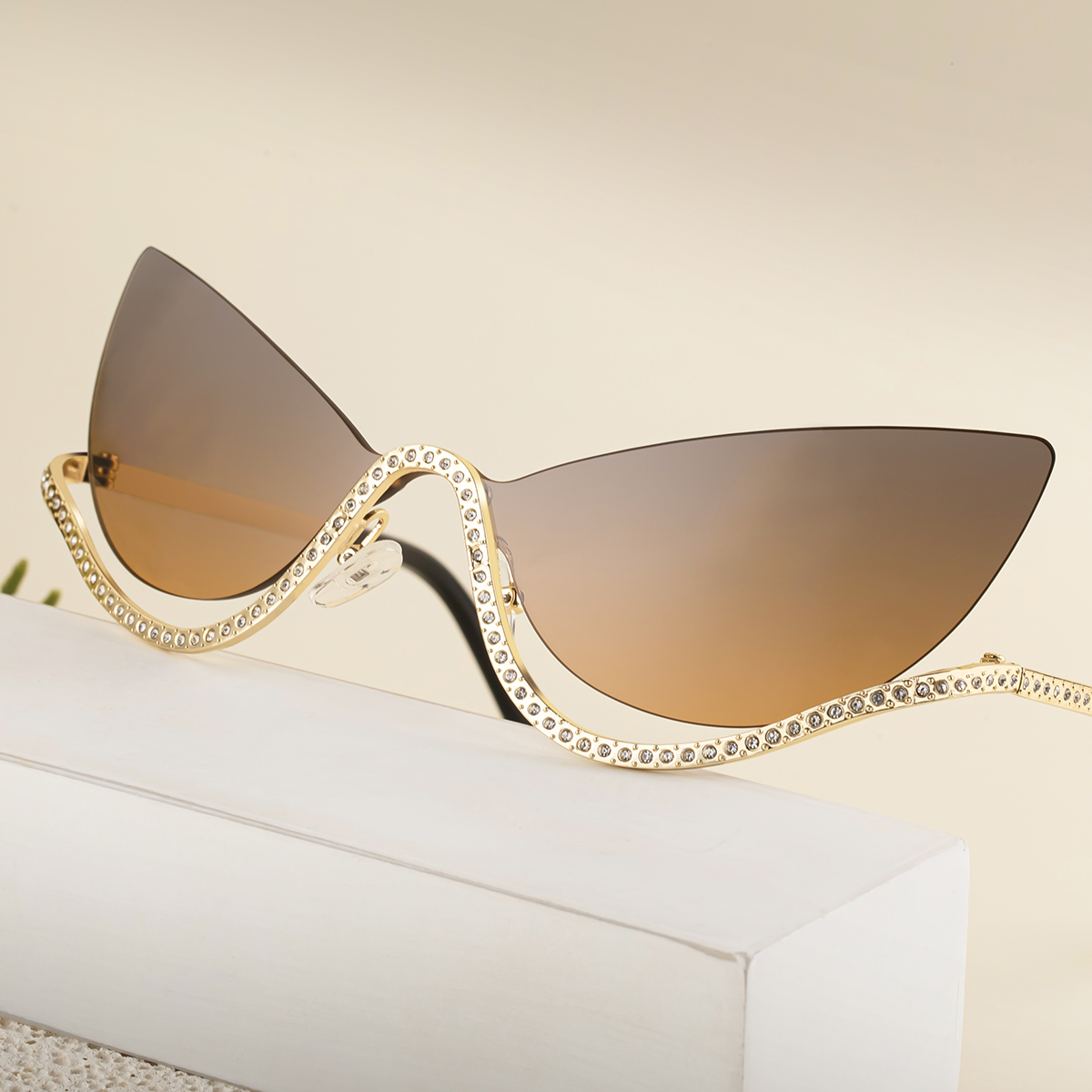 2025 new fashion cat-eye frameless sunglasses for women personality trend high-end diamond-studded outdoor street shooting sunglasses for women SMT-HD90358