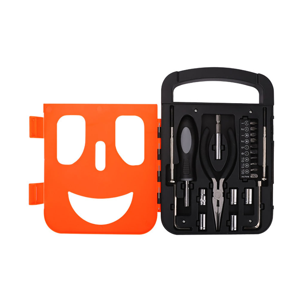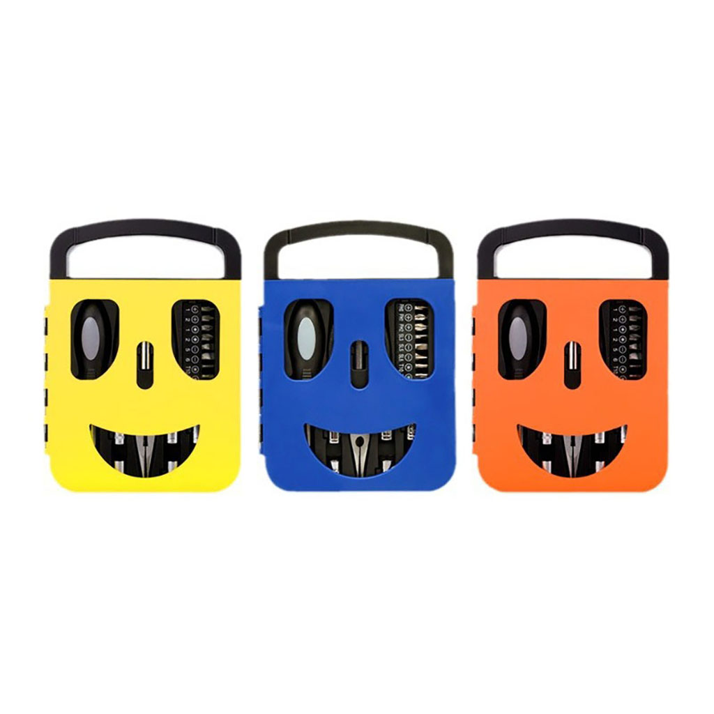 22-Pieces Multi-functional Socket Tool Kit Set in Smiley-shaped Storage Case includes the following features :