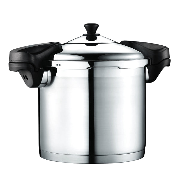 - 8L stainless steel pressure cooker with impact bonded bottom.