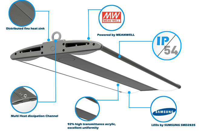 Adopting SMD LEDs light source, high output lighting efficiency 100lm/W, high Color Rendering Index (CRI>80) ,excellent heat dissipation, low light decay;
