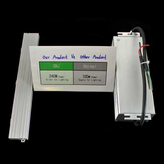 The high-quality driver from the left is specially engineered product. The meticulous construction allows reliable and stable performance. This 240W driver is ideal for a wide range of lighting products.