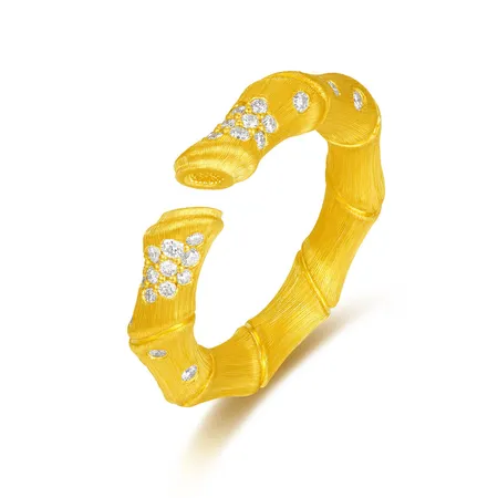 Crafted for timeless elegance, this exquisite ring features a stunning open-ended design in lustrous 24-karat gold. The warm, rich hue of the pure gold band is beautifully accented by delicate diamonds, meticulously set to catch the light with every movement. Its minimalist yet sophisticated style offers a perfect blend of luxury and modern versatility, making it an ideal statement piece for any occasion. Simple, radiant, and effortlessly chic—this ring is more than an accessory; it`s a wearable treasure.