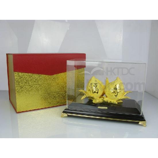 This is a 24K gold plated figurine in design of double peach whch is mean of luckly and health.