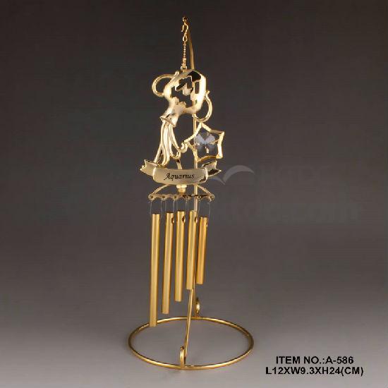 24K Gold Plated Metal Aquarius Zodiac Windchime with Swarovski Crystal