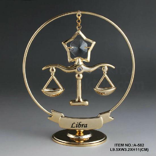 24K Gold Plated Metal Libra Zodiac Ring Stand with Swarovski Crystal