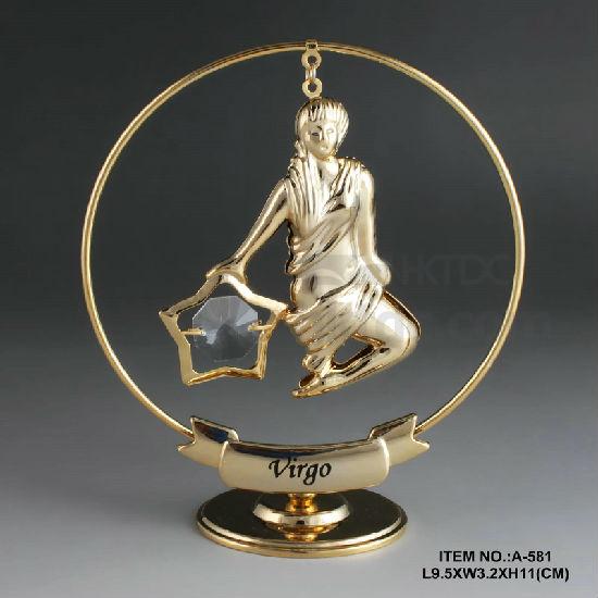 24K Gold Plated Metal Virgo Zodiac Ring Stand with Swarovski Crystal