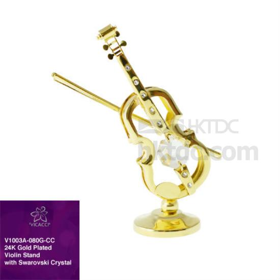 24K Gold Plated Violin Stand with Swarvoski Crystal