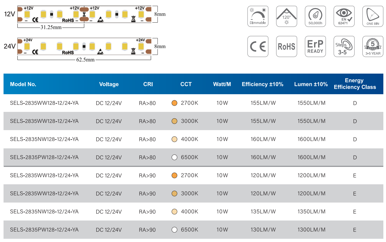 Color Temperature(CCT) | 2700K/3000K/4000K/6500K |