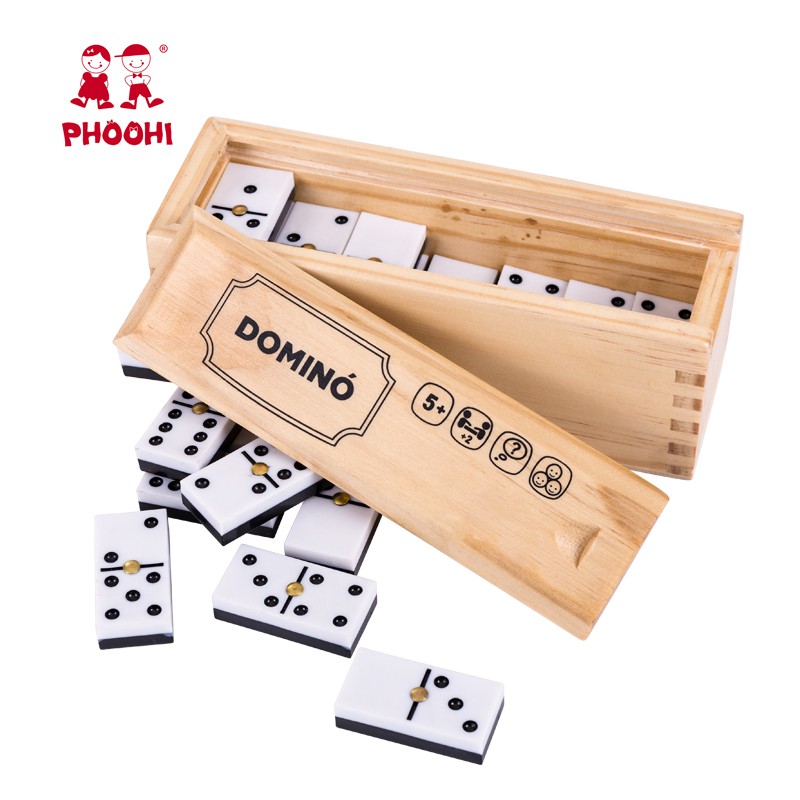 Hot 28 PCS Children Educational Play Puzzle Game Wood Mini Domino Set For Kids 3+