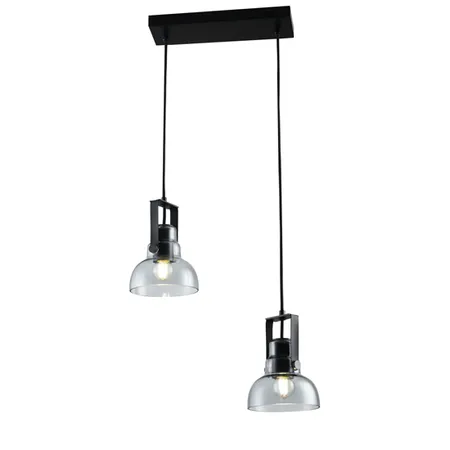 2Lt Pendant Lamp, Material:Metal+Glass, Bulb:2x E27 Max.40W, Product Size:L380×W142×H1500mm, Shade size:Ø142×130mm ,Colour:Black + smoke glass , or Gold + Black metal parts / Cognac glass , or Black + Clear glass, Packing:white box+colour label