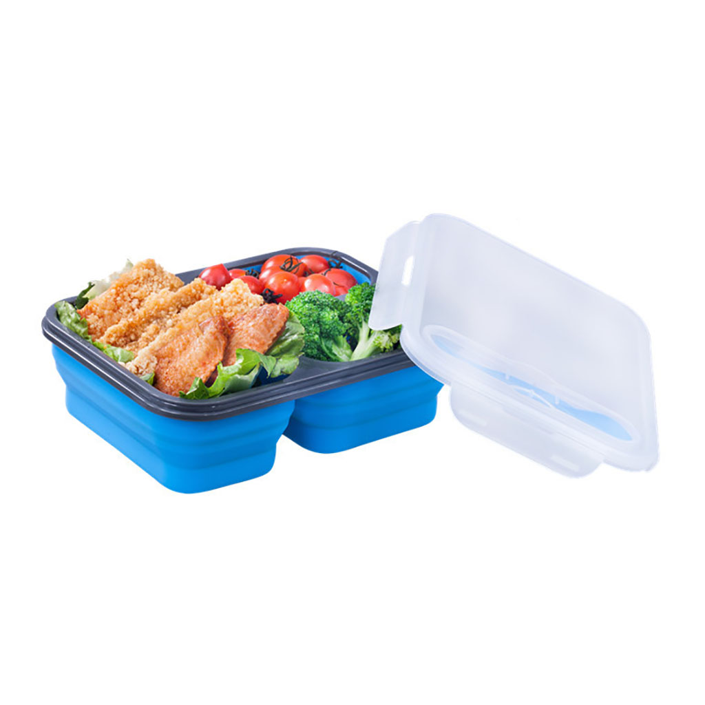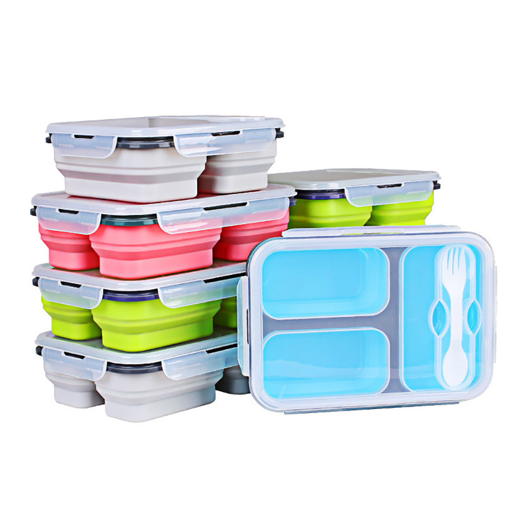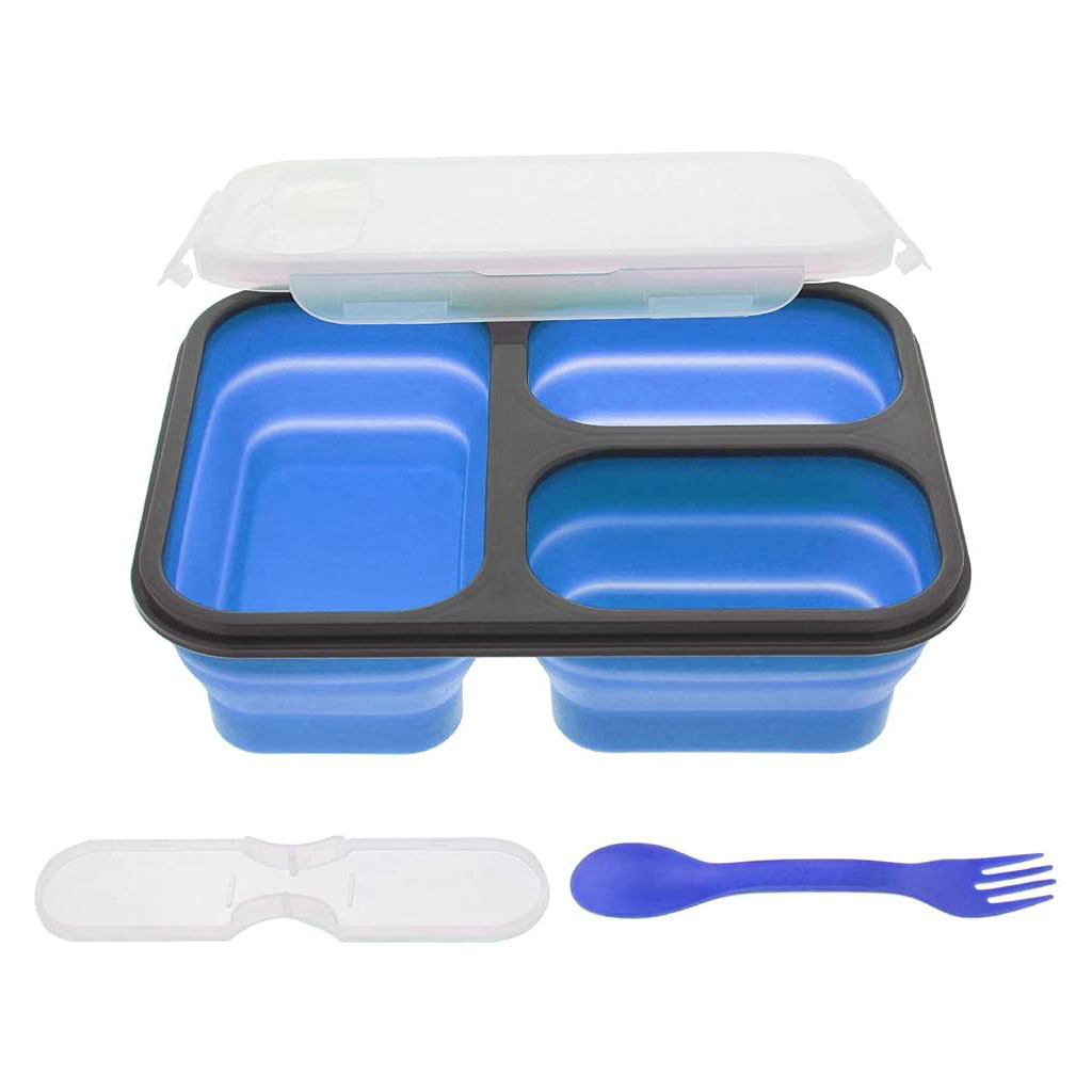 3 Compartments Silicone Folding Bento Lunch Box with 2-in-1 Spork Tool includes the following features :