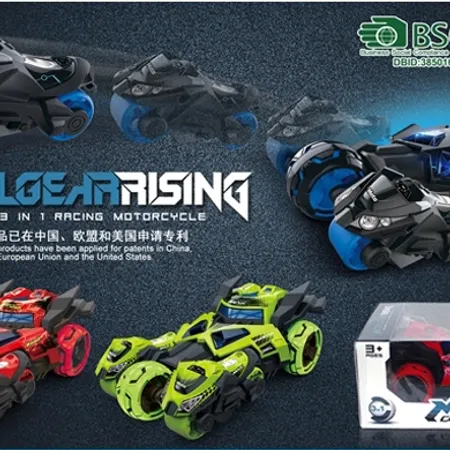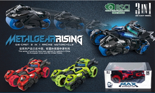 Description:1:32 scale 3 IN 1 metal alloy catapult race motorcycle diecast die cast car toy with music and light