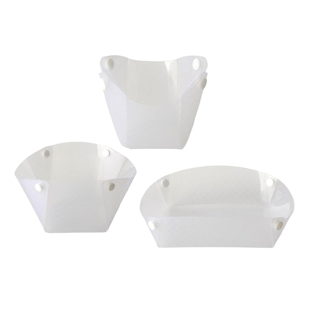 Plate - 900 ml; Folded - L20 x W19 x H5.5 cm; Expand - L25.5 cm x W23 cm; Bowl - 1,000 ml; Folded - L18 x W14 x H9 cm; Expand - L29 cm x W26.5 cm; Cup - 350 ml; Folded - L12 x W11 x H8.5 cm; Expand - L23 cm x W20 cm