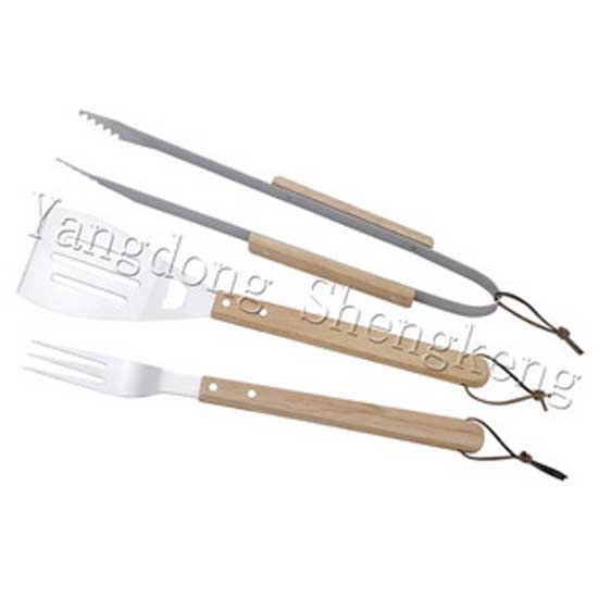 The featured set comes with barbecue tongs, a fork and a weasel. Each tool comes with an easy-to-grip handle. There is also a string at the tip of each piece for hanging.