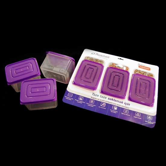 The storage boxes of this set come with violet lids. Each of them comes in a round-angled rectangular shape. They also feature transparent containers.