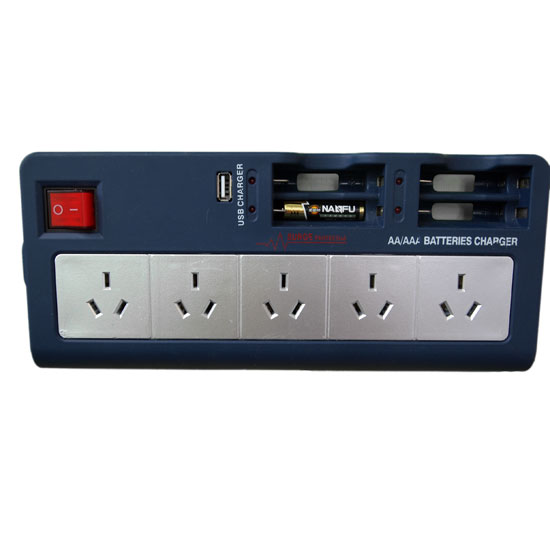 This 3-pin electric socket comes with five outlets for convenient using. It can also supply power to AA/AAA batteries and USB devices. This multi-function electric socket makes an ideal choice for home use.