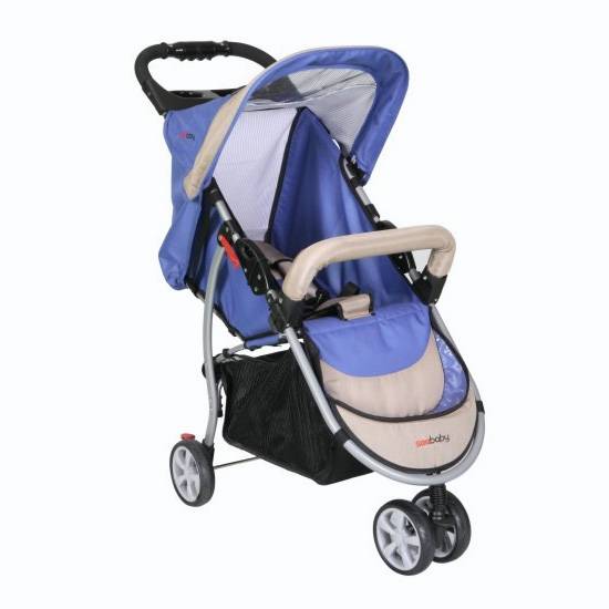 The 3-wheel baby stroller features a reclining seat with an adjustable footrest. The seat is equipped with a 4-point safety harness and a padded armrest front. Go out with your little one in this functional baby stroller.