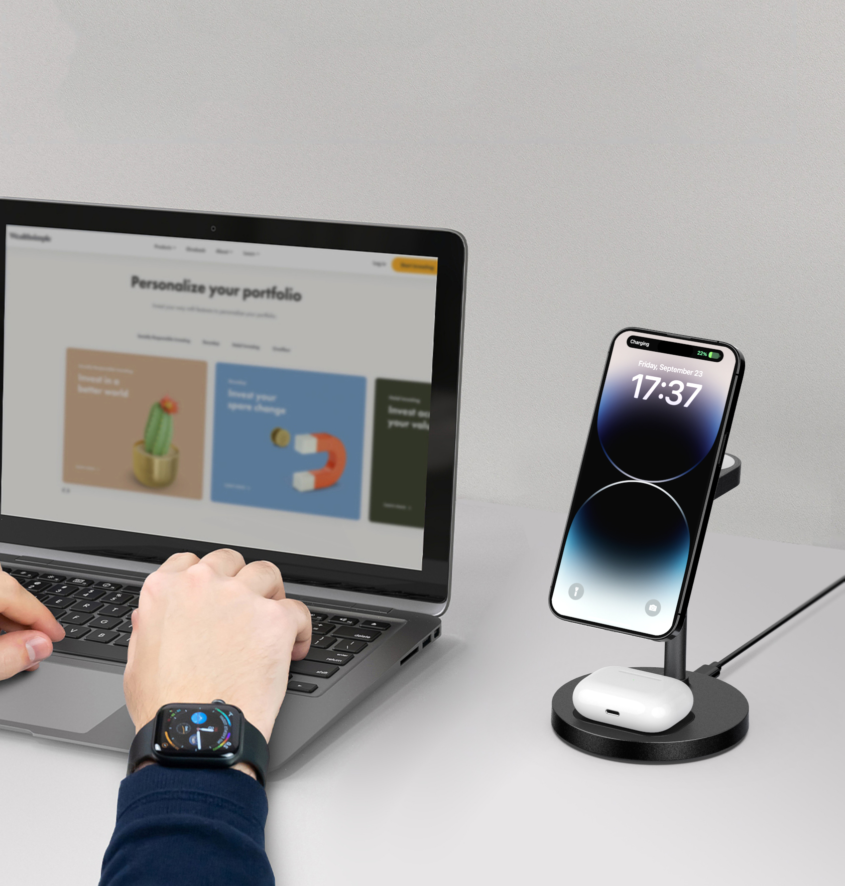 3 in 1 Magnetic wireless charger Stand (MFI)