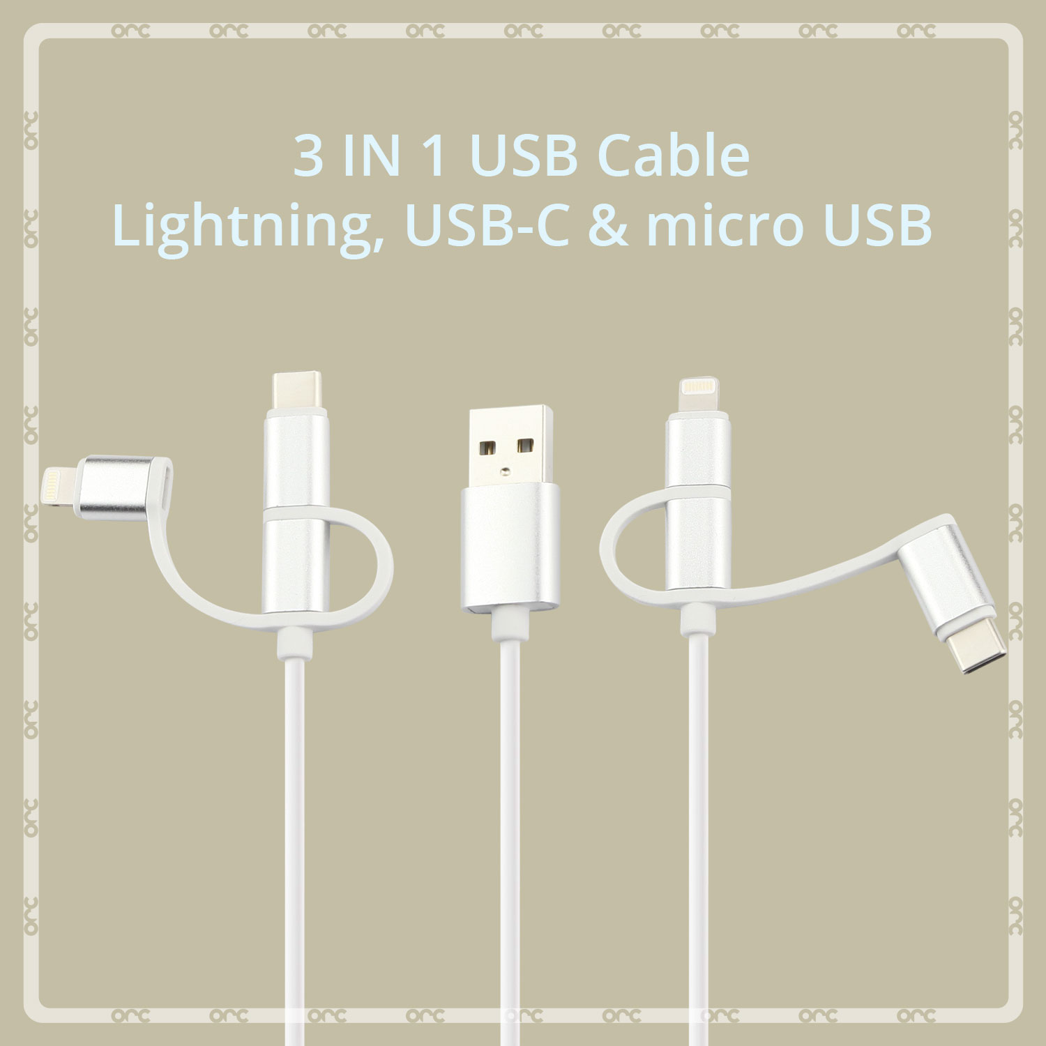 3 in 1 USB Cable for Lightning & USB-C & micro USB