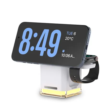 ☆ 4 in 1 wireless charger station: mobile phone (MagSafe Max to 15W), Apple watch (2.5W), TWS (5W), light