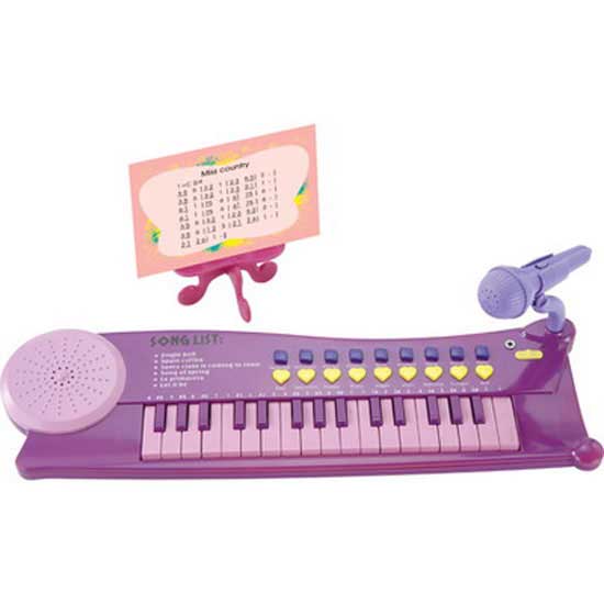 This adorable toy electronic organ is in purple and pink color. The 32-key electronic organ can greatly arouse kids' interest towards music. It is fitted with a small microphone for added functionality.